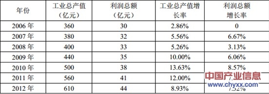 2006-2012年低壓電器行業(yè)工業(yè)總產(chǎn)值、利潤總額增長趨勢